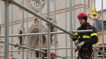 Norcia mercoledì 23 novembre 2016 - costruzione pedana per lavori si torre civica