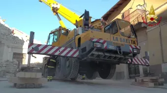 Norcia lunedì 05 dicembre 2016 - lavori di messa in sicurezza di un edificio in corso sertorio, ai fini riapertura viabilità stradale