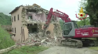 Norcia martedì 23 maggio 2017 - san pellegrino norcia (pg) - conclusione smontaggio controllato edificio privato.