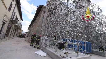 Preci venerdì 21 aprile 2017 - preci (fraz. abeto) (pg) - messa in sicurezza chiesa di san martino di abeto con puntellatori, saf e gos.